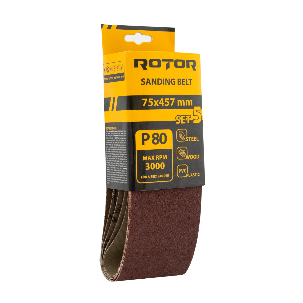 Banda de șlefuit P80 75*457 set 5 ROTOR Dimensiune: 75 mm x 457 mm Granulație: P80 Set: 5 benzi Material abraziv: Oxid de aluminiu (corindon) Utilizare: Banda de șlefuit cu granulație P80 este utilizată pentru șlefuirea fină a suprafețelor de lemn, metal sau plastic. Este potrivită pentru lucrările de finisaj mediu, oferind un rezultat neted, fără urme vizibile ale șlefuirii. Avantaje: Granulația P80 ajută la obținerea unui finisaj uniform și neted pe majoritatea materialelor, fără a lăsa urme adânci sau zgârieturi. Este ideală pentru șlefuirea preliminară a suprafețelor care urmează să fie vopsite sau finisate. Setul de 5 benzi oferă o durabilitate mai mare și un raport bun între preț și performanță pentru lucrări repetate.