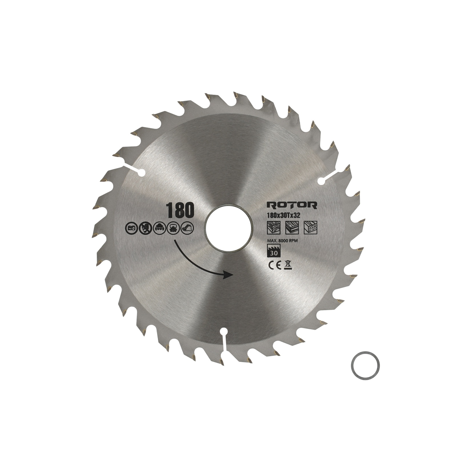 Disc de tăiat lemn 180×32 mm 30T ROTOR este proiectat pentru lucrări de debitare rapidă și eficientă a lemnului, fiind potrivit pentru utilizarea pe fierăstraie circulare compatibile cu dimensiunea acestuia. Cu un diametru exterior de 180 mm și un alezaj interior de 32 mm , discul se montează ușor și asigură stabilitate în timpul lucrului. Cei 30 de dinți sunt gândiți pentru tăieri mai rapide și grosiere, ceea ce îl face ideal pentru lemn masiv, grinzi, scânduri sau alte materiale unde viteza de tăiere primează în fața preciziei. Discul este fabricat din oțel de calitate superioară și este echipat cu dinți din carbură de tungsten (HM/Vidia), rezistenți la uzură și durabili, oferind performanță constantă chiar și în condiții de utilizare intensivă. Specificații tehnice: Diametru exterior: 180 mm Diametru interior (alezaj): 32 mm Număr dinți: 30 Material: Oțel de înaltă calitate + dinți vidia (HM) Utilizare: Tăieri rapide și eficiente în lemn Acest disc este recomandat pentru cei care au nevoie de tăieturi rapide și puternice , fiind ideal pentru construcții și lucrări de debitare brută.