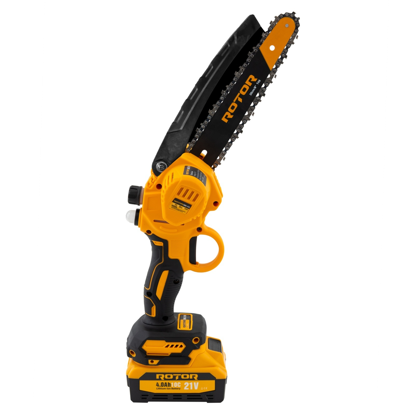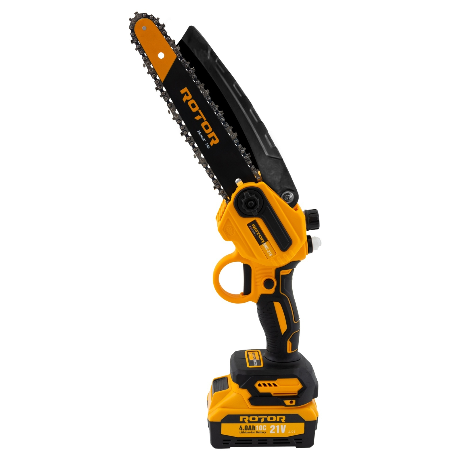 RMC218 Mini drujbă cu acumulator ROTOR Mini drujba RMC218 de la ROTOR este o unealtă compactă și puternică, ideală pentru tăieri precise și eficiente în diverse materiale, oferind versatilitate și portabilitate. Specificații tehnice: - Voltaj: 21 V - Acumulator: 4.0 Ah - Putere: 900 W - Viteza de rotație: 4500 rot/min - Max. lungimea de tăiere: 100 mm - Lungimea lamei: 8" (20 cm) - Tip lanț: 20 cm / 8" (T45) Conținut pachet: - 2 x Acumulatori 21V 4Ah - 1 x Încărcător - 1 x Cutie de transport - 1 x lama -2 x lanturi Mini drujba este echipată cu acumulatori de mare capacitate, asigurând o autonomie extinsă și performanță constantă. Cutia de transport inclusă facilitează depozitarea și transportul, iar designul compact al lamei permite tăieri precise și eficiente.