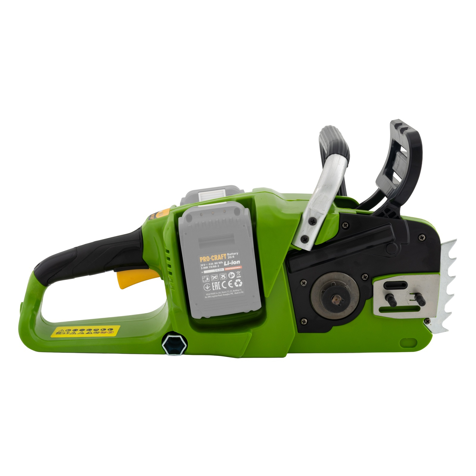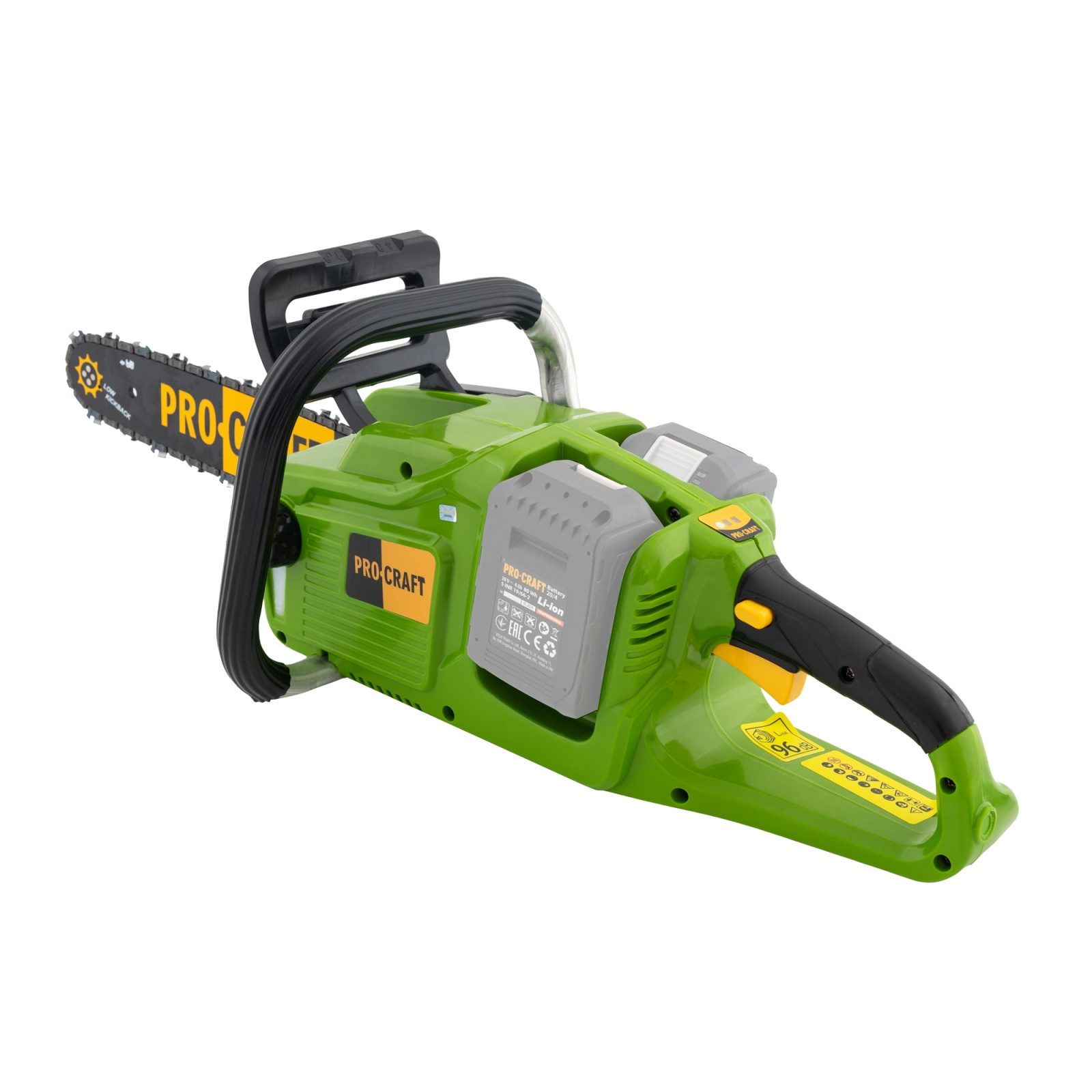 Drujba pe acumulatori Procraft PCA/2 2x20Li, Li-ion, 40 V, 4.0 Ah, 5500 rotatii, motor Brushless (fara perii, cu fiabilitate crescuta). Putere 160W / 5500 Rpm.1x Lama tip Oregon / 35 Cm.1x Lant tip Oregon ( 26 dinti, 52 pinteni, pas 3/8 inch ).Functioneaza cu 2 acumulatori 20V / 4Ah. Acumulatorii si incarcatorul nu sunt incluse in pachet. Pornire Soft Start.Compatibila cu acumulatori de 20V/ 4Ah ( Cod Acumulator 10072 ). Compatibila cu incarcatoare rapide Procraft ( Cod incarcator 10074 / Cod incarcator 10075).Greutate 4.5 Kg.