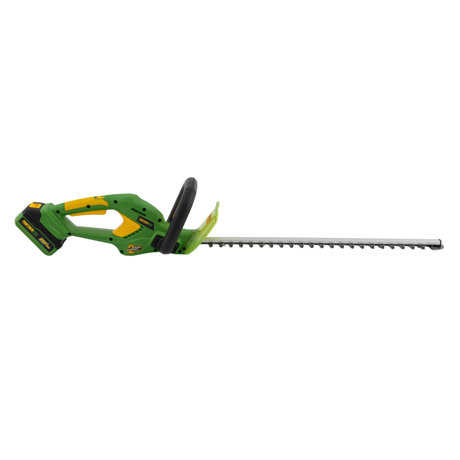 Mașină de tuns gard viu pe acumulator PARTNER PRO PP-BHT2052 – Precizie și Mobilitate pentru Grădina Ta Îngrijirea gardului viu devine simplă, eficientă și lipsită de griji cu mașina de tuns PARTNER PRO PP-BHT2052. Funcționând pe platforma cu acumulator Li-Ion de 20 V (baterie compatibilă cu toată gama PARTNER PRO), acest trimmer electric îți oferă libertatea completă de mișcare, fără cabluri și fără zgomotul unui motor termic. Cu o lamă dublă de 610 mm și o viteză de lucru de 2.700 rpm, poți tunde precis și uniform garduri vii, arbuști ornamentali sau ramuri tinere de până la 16 mm grosime, acoperind rapid suprafețe mari cu mai puține treceri. Designul ergonomic include un mâner frontal tip buclă, ideal pentru tăieri verticale, orizontale sau în unghi, iar greutatea redusă de doar 2 kg (fără baterie) permite utilizarea confortabilă, chiar și în sesiunile mai lungi. În plus, mânerul cauciucat anti-alunecare, frâna de siguranță, apărătoarea transparentă pentru vizibilitate crescută și carcasa rezistentă la șocuri îți oferă siguranță și control la fiecare utilizare. Ideal pentru grădini rezidențiale, curți medii sau lucrări semi-profesionale, PP-BHT2052 este un partener de încredere pentru o grădină mereu îngrijită – fără efort și fără cabluri încurcate. Caracteristici tehnice: - Tensiune de alimentare: 20V - Lungimea lamei: 61 cm - Viteză de rotație: 2700 rpm - Diametru maxim de tăiere: 16 mm - Tip motor: Cu perii – fiabil și ușor de întreținut - Tip mâner: Rotativ – permite ajustarea unghiului de tăiere pentru un control optim și confort îmbunătățit - Cod acumulator compatibil : 14710 - Cod incarcator compatibil : 14709 Conținut pachet - Mașină de tuns gard viu PARTNER PRO PP-BHT2052 (fără acumulator) - Husă de protecție pentru lamă - Manual de utilizare Observație Acest produs NU include acumulator și încărcător.