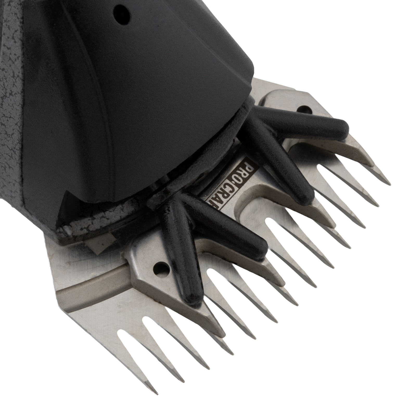 Aparat tuns oi Procraft SC2600 de mana, 500 W, 2600 RPM, 76 mm, Electric Acest aparat de tuns oi, model Procraft SC2600 este conceput pentru a indeparta lana rapid de la un numar mare de oi. Permite mentinerea ritmului alert de tundere si comoditate in manevrare.Avantajele dispozitivului Dispozitivul este echipat cu un motor electric cu o putere de 500 W. Este capabil sa dezvolte un numar de 2600 de turatii. Intensitatea acestora poate fi reglata cu ajutorul variatorului de turatii cu 6 trepte. Treapta 1 max - 433 rpm Treapta 2 max - 866 rpm Treapta 3 max - 1299 rpm Treapta 4 max - 1733 rpm Treapta 5 max - 2166 rpm Treapta 6 max - 2600 rpm Corp captusit cu cauciuc antialunecare Motor puternic Sistem de ventilare eficient Durata de viata este preconizata a servi la tunderea a 1000 de capete. Setul de cutite cu lama inferioara fixa si lama superioara manevrata de suportul cu 4 capete sunt confectionate din otel. Mecanizmul de oscilare ce antreneaza lama superioara poate fi indepartat usor, prin rasucire cu filet in caz de necesitate de schmbare a cutitului suerior. Cutitele nu se ascut deoarece isi mentin calitatea taierii prin autoascutire in momentul lucrului.Alte particularitati si avantaje a modelului aparat tuns oi Procraft SC2600 sunt rotatia pe rulment ce reduce zgomotul si vibratiile; reglajul cutitelor la intervale regulate dupa ce s-e tocesc; componentele de calitate inalta ce formeaza scula in sine.