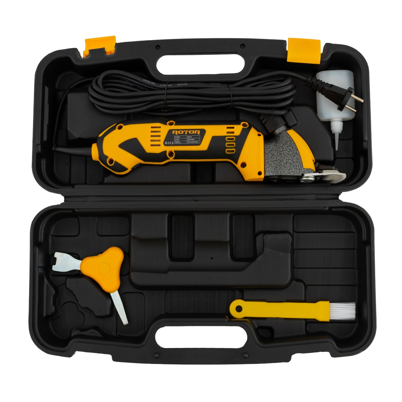 RTO900 Mașină de tuns oi ROTOR – Putere și Eficiență în Tundere Mașina de tuns oi ROTOR RTO900 este proiectată pentru utilizări intense și eficiente în gospodării sau ferme. Cu o putere de 900W și o viteză de rotație de 2800 rpm , această unealtă asigură o tundere rapidă și precisă, fiind potrivită pentru toate tipurile de blană. Pieptenele lat de 78 mm cu 9 dinți permite o acoperire mai mare dintr-o singură trecere, reducând timpul de lucru. Beneficii: Motor puternic de 900W pentru performanță constantă Tundere rapidă datorită vitezei de 2800 rpm Pieptene lat de 78 mm – ideal pentru suprafețe mari Design robust, special conceput pentru uz repetat Compatibilă cu majoritatea accesoriilor standard pentru tundere Caracteristici tehnice: Tensiune alimentare: 220–240V Putere: 900W Viteză rotație: 2800 rpm Număr dinți pieptene: 9 Lățime pieptene: 78 mm