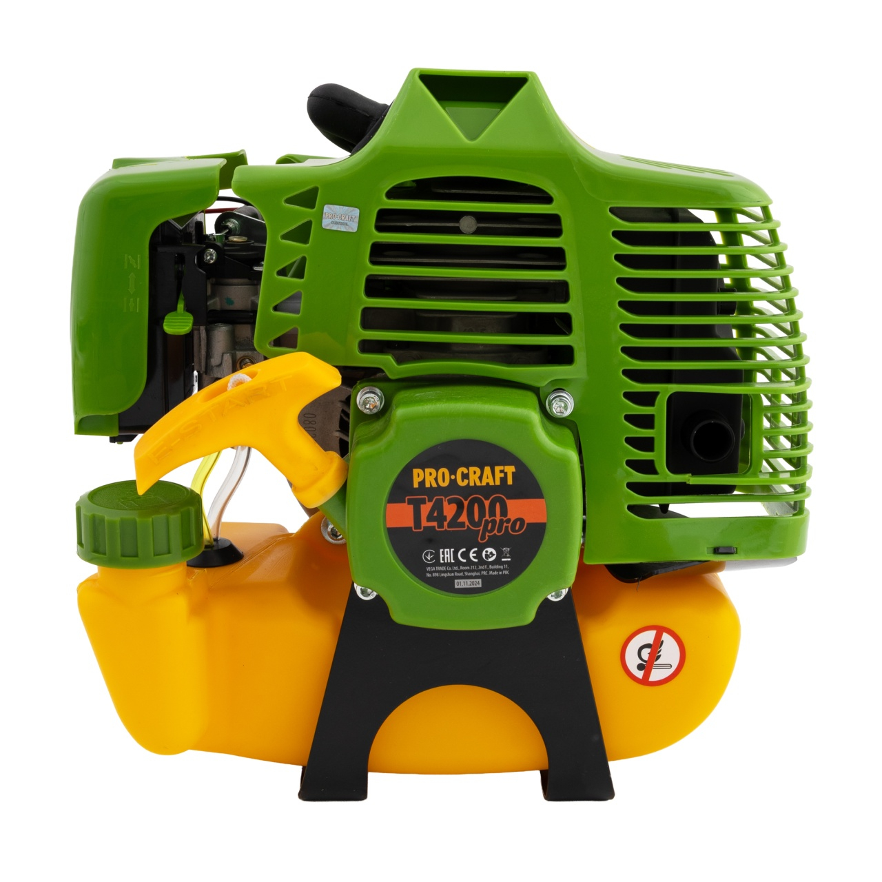 Motocoasa 5.6CP, 9000 rpm PROCRAFT T4200 Pro Motocoasa PROCRAFT T4200 Pro este echipată cu un motor puternic de 5.6CP, ce oferă suficientă energie pentru a face față celor mai exigente cerințe. Cu cele 3 moduri de tăiere - Disc Vidia 40T, Disc Vidia 40T cu aripioare și Disc Profesional 3T SWISSNOX - veți tăia cu ușurință orice tip de iarbă, buruiană sau arbust. Greutatea redusă a motocoasei și designul ergonomic, dotat cu un sistem de absorbție a vibrațiilor, fac ca această motocoasă să fie perfectă pentru curățarea gazonului sau îndepărtarea buruienilor și arbuștilor. Această motocoasă este ideală pentru utilizare profesională, oferind performanță și fiabilitate ridicată pentru diverse sarcini de întreținere a spațiilor verzi. Detalii Tehnice: - Putere motor: 5.6 CP - Capacitate cilindrică: 52 cm³ - Număr rotații: 9000 rot/min - Lățime tăiere: 254 mm - Greutate: 7.5 kg Conținut pachet: - 1x Motocoasa PROCRAFT T4200 Pro - 1x Disc Vidia 40T - 1x Disc Vidia 40T cu aripioare - 1x Disc Profesional 3T SWISSNOX - 1x Cap Mosor - 1x Ham dublu - 1x Trusă de chei