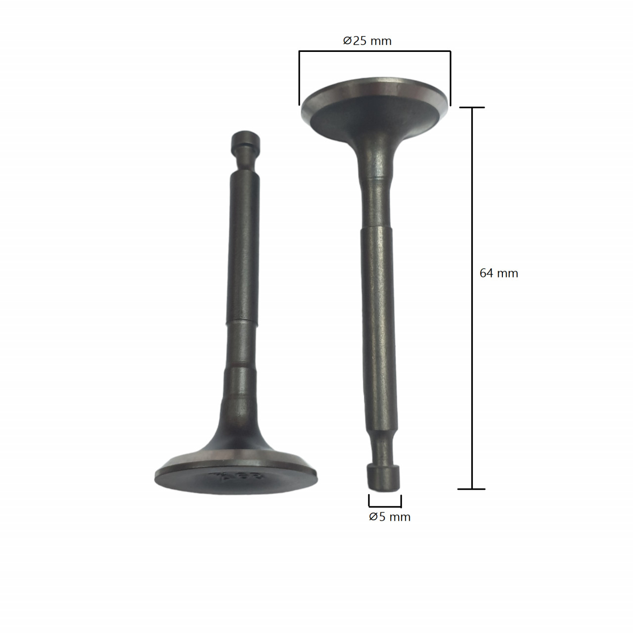 Supapele compatibile Honda GX 160 (5.5hp, 6.5hp, 168F) reprezintă o solutie adaptată pentru generatoare, motopompe si motocultoare. Aceste supape sunt potrivite pentru modelele Honda GX140, GX160, precum si pentru generatoarele chinezesti de 5.5hp, 6.5hp, 168F. Dimensiunile supapei de admisie sunt D25 x d5.5 x L64 mm, iar cele ale supapei de evacuare sunt D24 x d5.5 x L62 mm. Mentionăm că produsul, desi nu este original, este compatibil cu toate modelele specificate, asigurand functionarea eficientă si fiabilă a motoarelor si generatoarelor mentionate mai sus. Detalii tehnice: Compatibil cu: GX 160, 168F, GX 140 Continut pachet: 1 x Supape compatibilie Honda GX 160 (5.5hp, 6.5hp, 168F)
