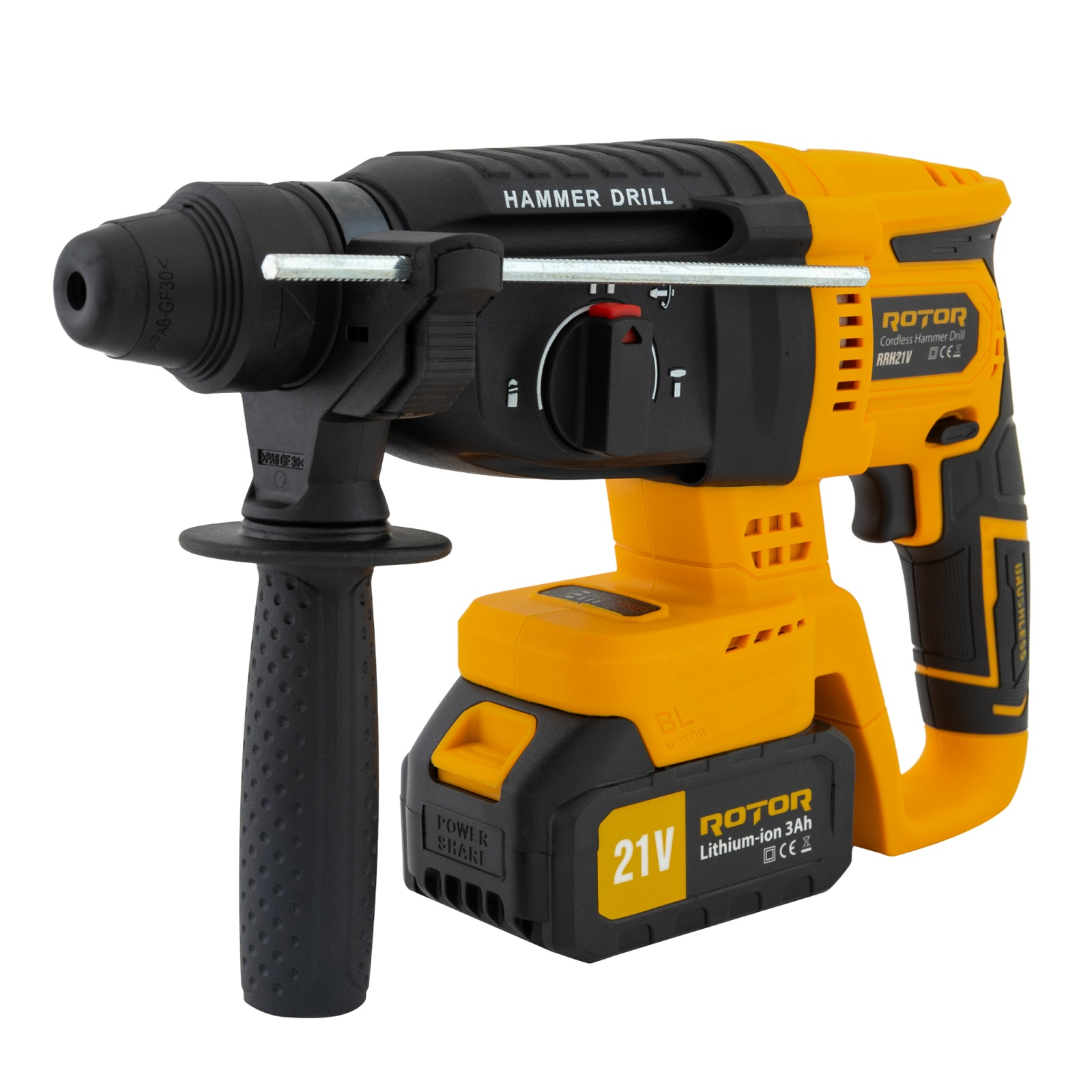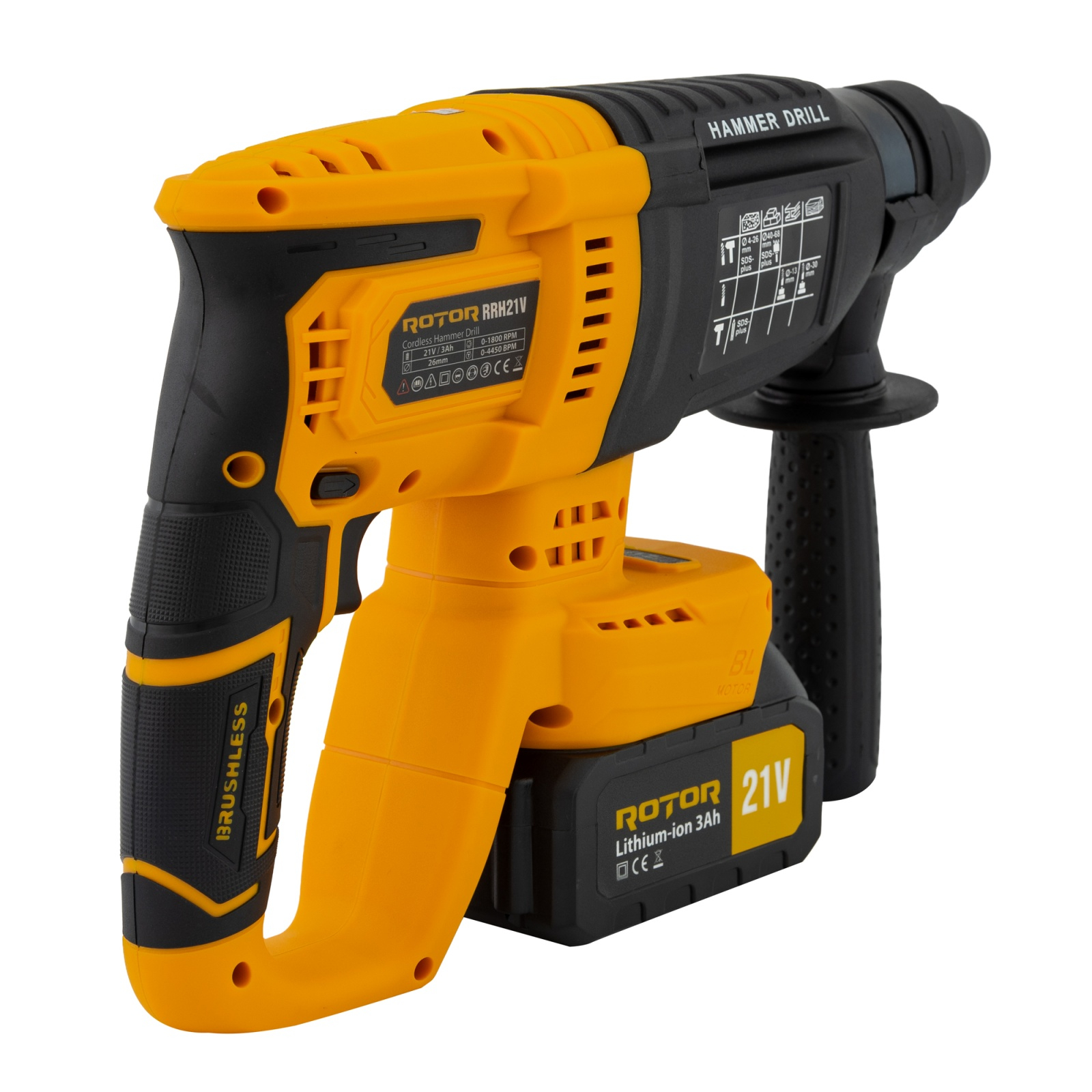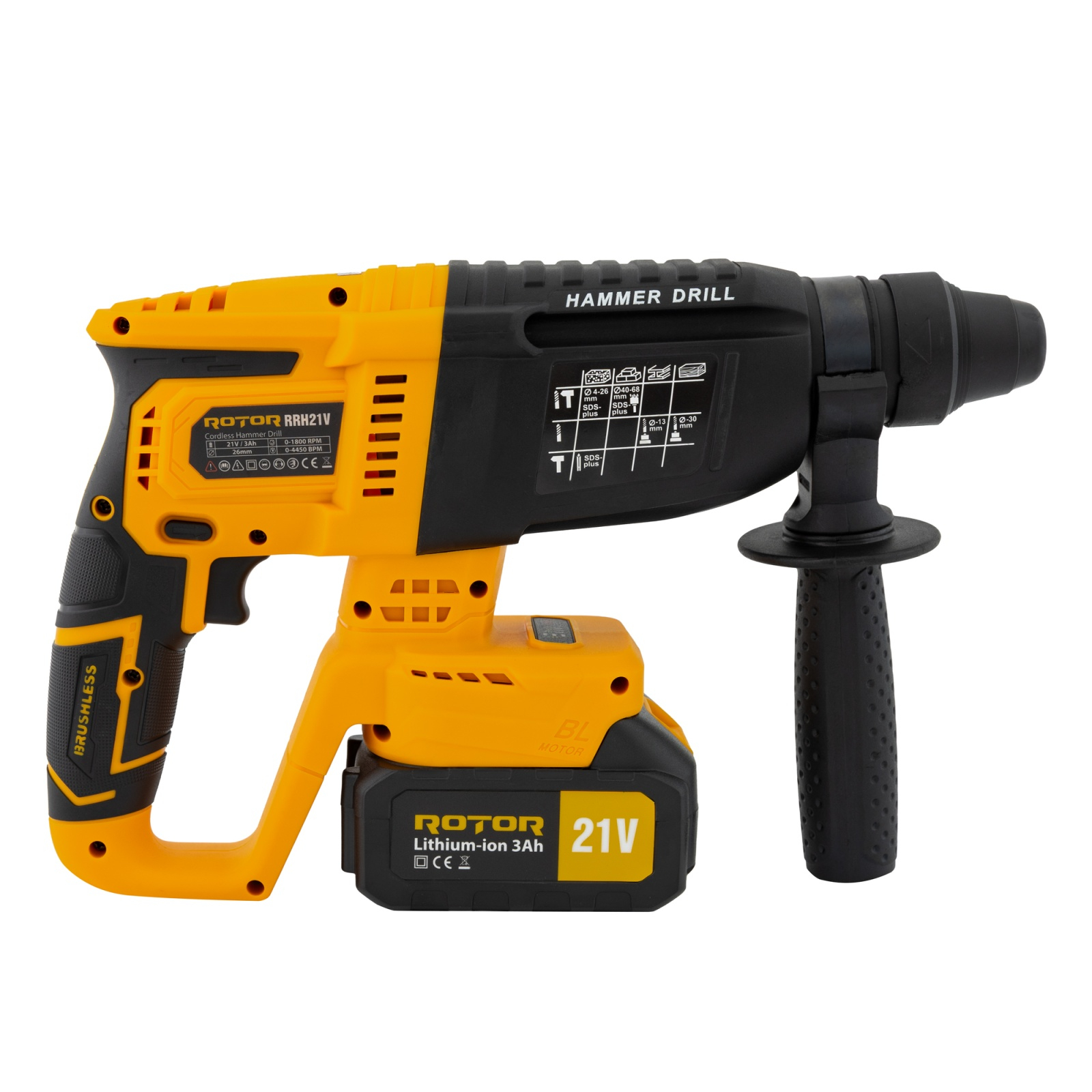 Ciocanul rotopercutor cu acumulator ROTOR RRH21V este proiectat pentru lucrări care necesită forță și precizie, fiind ideal pentru proiecte ce implică găurire, demolare și fixare în materiale dure. Alimentat de un acumulator de 21V/3Ah, acest model oferă o combinație de mobilitate și performanță optimă, adaptabilă atât în spații interioare cât și în aer liber, fără restricțiile unui cablu de alimentare. Caracteristici cheie și beneficii: - Putere și autonomie Cu un acumulator de 21V/3Ah, ciocanul asigură un timp de lucru îndelungat și o performanță constantă. Utilizarea acestui acumulator permite lucrări extinse fără întreruperi frecvente pentru reîncărcare, fiind potrivit pentru sarcini solicitante. - Viteză și eficiență în lucru Ciocanul atinge o viteză de rotație de 1800 rpm și un număr de 4450 bătăi pe minut, asigurând o avansare rapidă și precisă în materialele cele mai utilizate, ceea ce economisește timp și energie în realizarea lucrărilor. - Capacitate de găurire optimizată Modelul permite găurirea până la o adâncime de 26 mm în beton, 13 mm în oțel și 30 mm în lemn, acoperind cerințele specifice de construcție, reparații sau instalații. Astfel, este ideal pentru lucrări de forare în pereți de beton, structuri de oțel sau elemente din lemn. - Construcție și ergonomie Designul compact și echilibrat permite utilizarea ușoară în diferite poziții de lucru, inclusiv în zone greu accesibile. Mânerul ergonomic sporește confortul, reducând oboseala la utilizare îndelungată. - Mobilitate și versatilitate Faptul că funcționează pe bază de acumulator face ca modelul RRH21V să fie ușor de transportat și folosit în diverse locuri de lucru, fără să depindă de o priză electrică, ceea ce permite utilizarea în orice locație. Detalii tehnice: - Acumulator: 21V / 3Ah - Viteză rotație: 1800 rpm - Număr bătăi: 4450 bpm - Capacitate găurire: Beton - 26 mm, Oțel - 13 mm, Lemn - 30 mm Conținut pachet: - 2 x acumulatori - 1 x încărcător